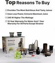 Made with BPA-free, food-grade plastic, this juicer ensures durability. It also features a stainless steel strainer, an auger made from Ultem used in spacecraft, and a copper-wound AC motor, thereby adding to its longevity.