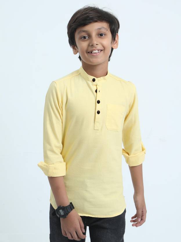 For every special occasion, on-trend casual/party wear solid button design full sleeve kurta shirt like this will work wonders on any outfit. It features a mandarin nehru collar neck, a front button, full sleeves and a solid all-over for a stylish appeal. Made from superb, quality fabric to make your child more charming.