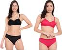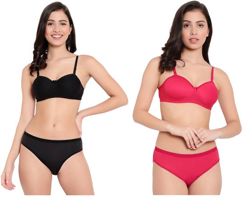 Bra & Panty Set Solid Black, Pink Lingerie Set