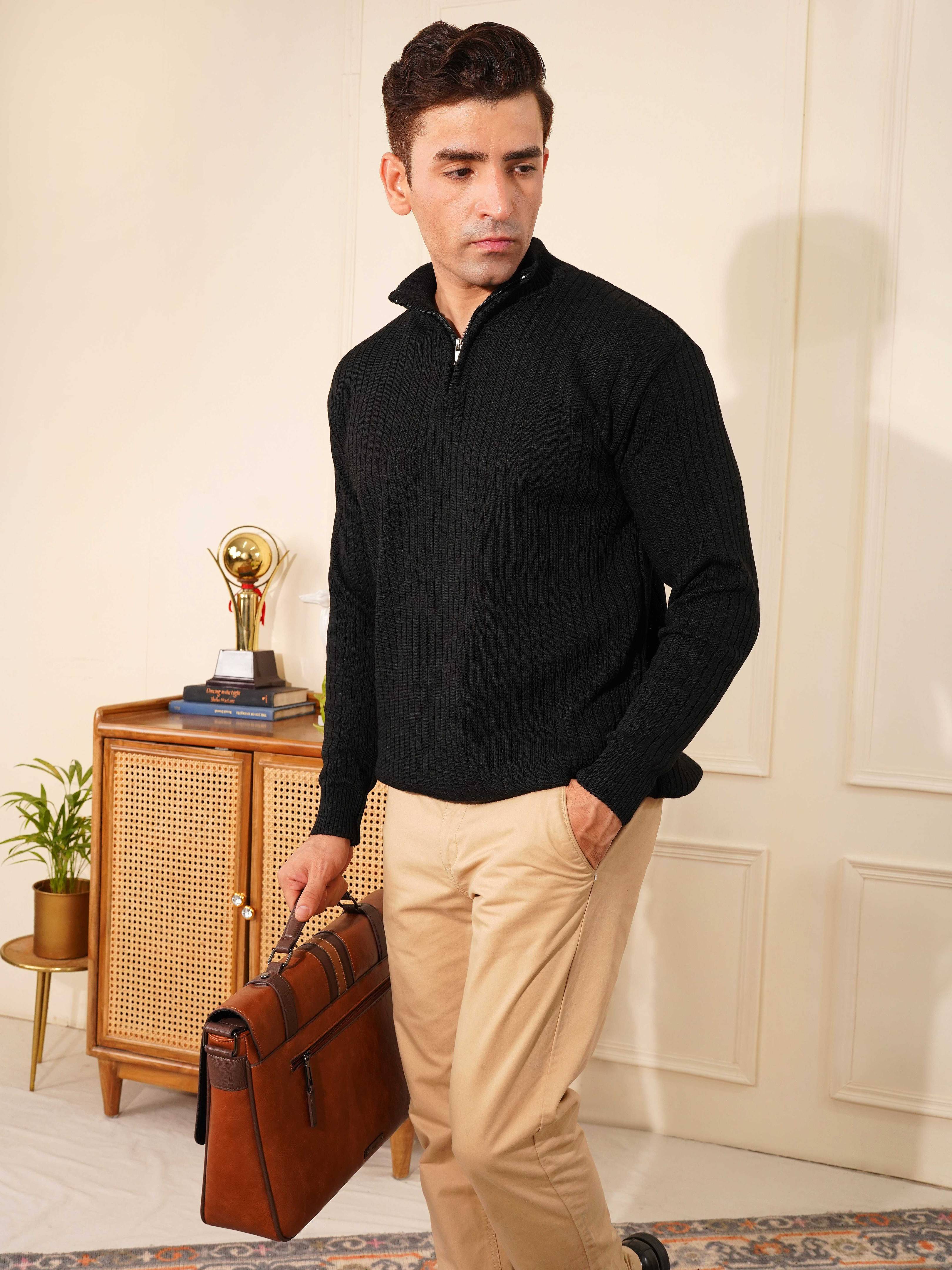 KVETOO Solid Collared Neck Casual Men Black Sweater