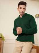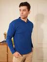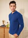 KVETOO Solid Collared Neck Casual Men Blue Sweater