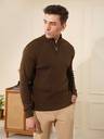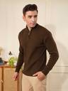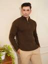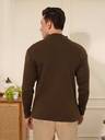 KVETOO Solid Collared Neck Casual Men Brown Sweater