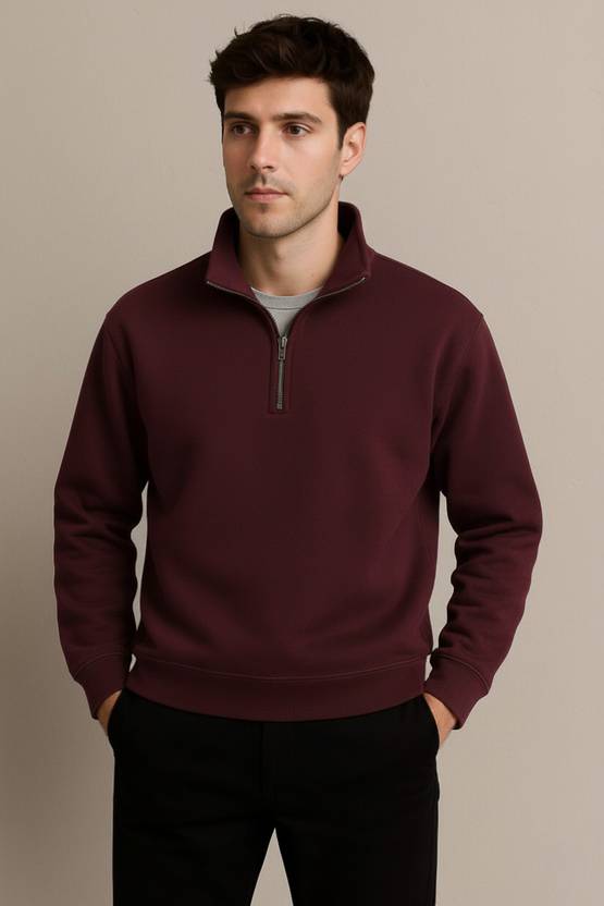 KVETOO Solid Collared Neck Casual Men Purple Sweater