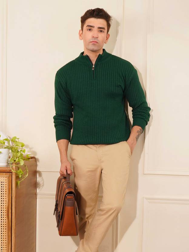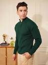 KVETOO Solid Collared Neck Casual Men Green Sweater