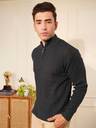 KVETOO Solid Mandarin Neck Casual Men Grey Sweater