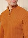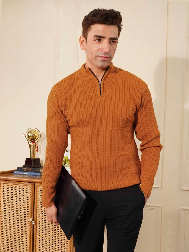 Stay cozy this winter with our Menβs High Neck Cable Knit Sweater, made from a premium acrylic wool blend that offers superior warmth and softness. Designed with a classic cable knit pattern, this sweater adds a stylish and timeless look to your winter wardrobe. The high neck with zipper closure protects against cold winds, while the full-sleeve design ensures all-day comfort. Ideal for casual wear, office wear, or winter outings, it pairs perfectly with jeans or chinos. A perfect knitted winter pullover for men, this sweater combines comfort, durability, and modern fashion. Upgrade your menβs winter wear collection with this versatile and warm high neck sweater.