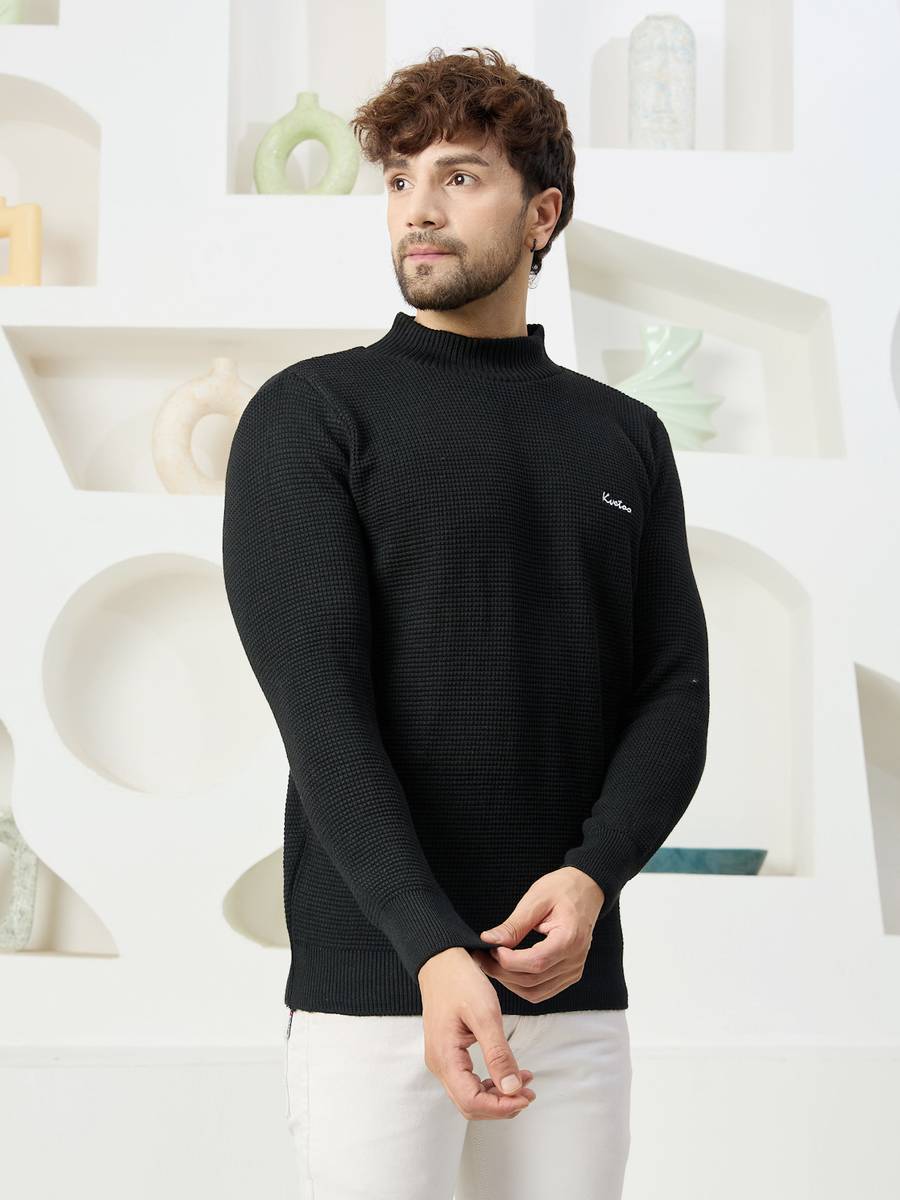Embrace comfort and style with this sleek green pullover sweater from the renowned brand. Crafted from premium knit material, it boasts a textured pattern that adds depth and visual interest. The turtleneck design lends a touch of sophistication, while the long sleeves provide ample coverage. This versatile piece can be effortlessly dressed up or down, making it a wardrobe essential for any occasion. Its relaxed yet tailored fit ensures a flattering silhouette, allowing for easy layering. Whether paired with chinos for a casual day out or complemented by tailored trousers for a dressier look, this sweater is sure to elevate your ensemble. Indulge in its cosy warmth and timeless appeal, perfect for the transitional seasons.