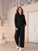 Upgrade your winter wardrobe with this Women’s Black Ribbed Knit Winter Co-ord Set – a perfect blend of comfort, style, and versatility. Crafted from premium soft knit fabric, this two-piece set includes a stylish collared sweater top and wide-leg pants, making it ideal for travel wear, lounge wear, winter outings, and casual daywear. The ribbed texture adds a chic touch, while the relaxed fit ensures all-day comfort. Pair it with sneakers for a sporty vibe or boots for a fashionable winter look.