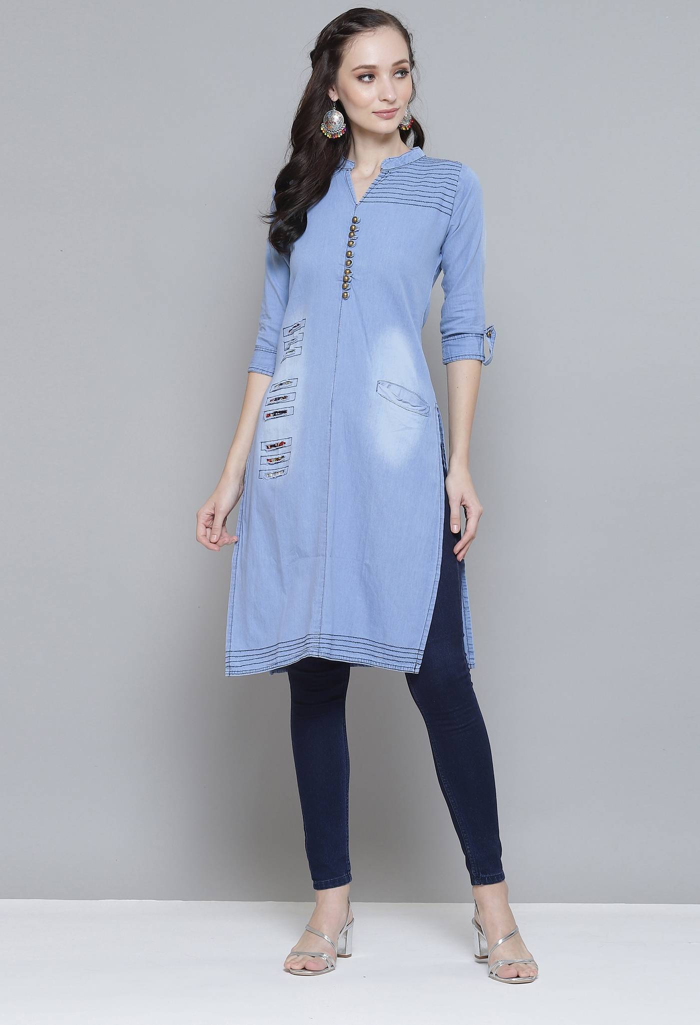 Complete The Look :-You'll love the style, comfort and durability of this Kvsfab kurta. For your next dinner party or family gathering, this Blue Straight Denim Kurta piece pairs well with dark leggings and chic flats.