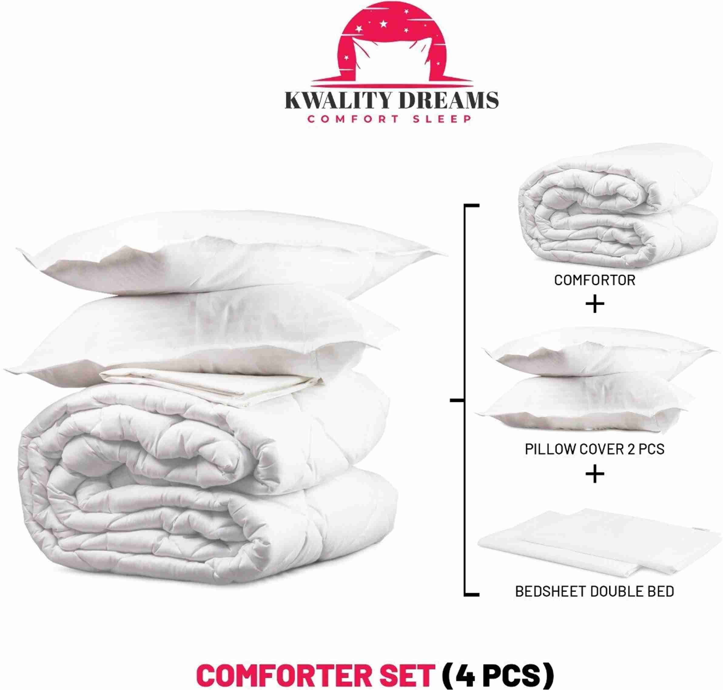Cotton Double King Sized Bedding Set (Beige, 1 Comforter, 1 Double Bed Bedsheet, 2 Pillow Cover)