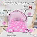 Kwitchy Cotton Baby Bed Sized Bedding Set (Pink, 1 Mosquito Net Bed, 1Baby Sleeping Bag, 1 Baby Bed, 10 Pcs Neppy)