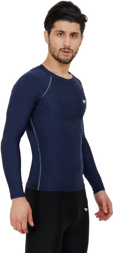 Compression Swimming t Shirt Full Sleevs for Men Men Solid Round Neck Polyester Dark Blue T-Shirt