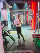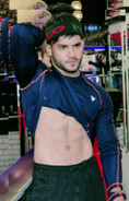 the upper left thigh. This type of outfit is typically used for activities like gym workouts, running, or other sports, offering support and moisture-wicking properties.
