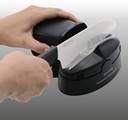 Battery powered, this electric knife sharpener is the perfect solution for at-home sharpening and refreshing of your ceramic and steel kitchen knives. Ideal for Kyocera Ceramic knives, the diamond grinding stone can take up to .5mm nicks off a blade, achieving a 35-degree angle. A convenient knife guide slot and assist roller allow for a user-friendly and controlled sharpening of the blade. This sharpener can be used on ceramic or metal knives. It’s easy to clean since cover and grinding stone unit is separate. ( Not recommended for the following Kyocera knives: KT-075-HIP-D, KT-200-HIP-D, FK-125N WH, or BK FK-181 WH or BK ).