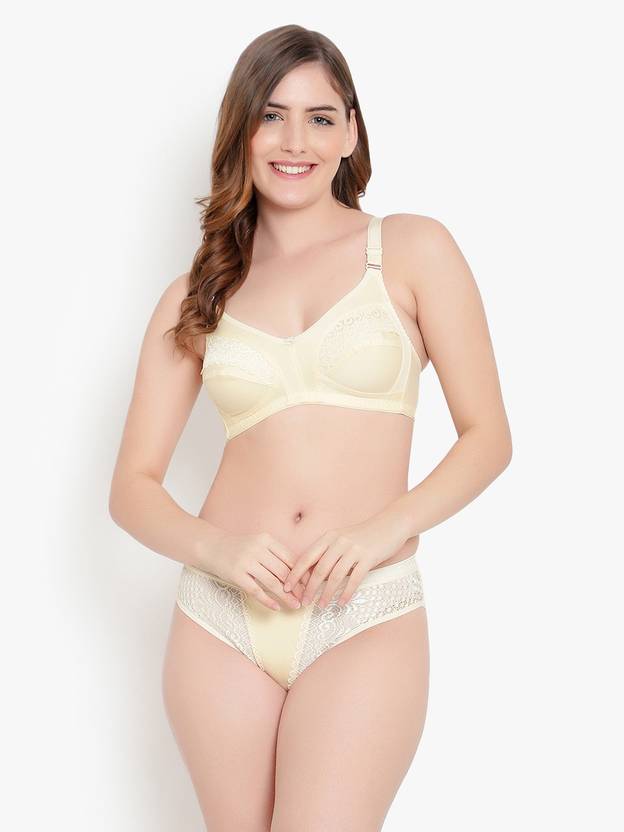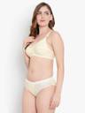 Bra & Panty Set Self Design Yellow Lingerie Set