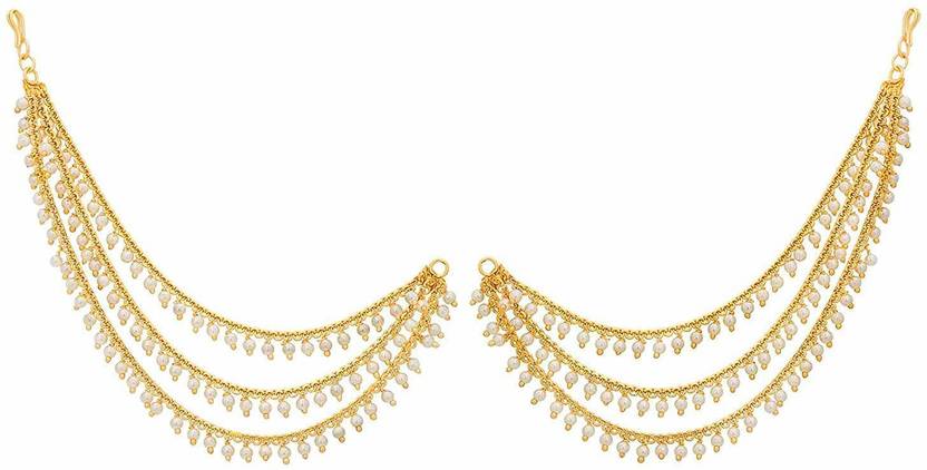 Kyoot Jewels Love for Jewels by Blessings Collection Presents Gold Plated Kaan Chain Pearl Drop Long Kansar Chain red and green Earrings For Women Girls. Stylish and Trendy gold plated long chain earrings from the Perfect for all occasions. All our Jewellery is Extreme Good quality, Anti allergic, High Silver Polish, rust and corrosion resistant. No lead or Nickel so it won’t irritate your skin. No Shisha hence light weight. The highest quality of Gold plating further ensures a long lasting shine. Instruction No direct Perfume Deo Chemicals on the Jewellery. It is advisable to store jewellery in an air tight container. First wear your makeup, perfume - then wear your jewellery. This Designer Pair of Earrings Make You feel Like a Diva. Clean it with dry and soft cloth after wearing. This will keep your jewellery shining for years. Desire Collection Gold Plated Kaan Chain Pearl Drop Long Chain Earrings For Women Girls.