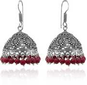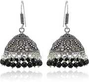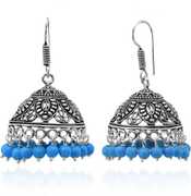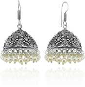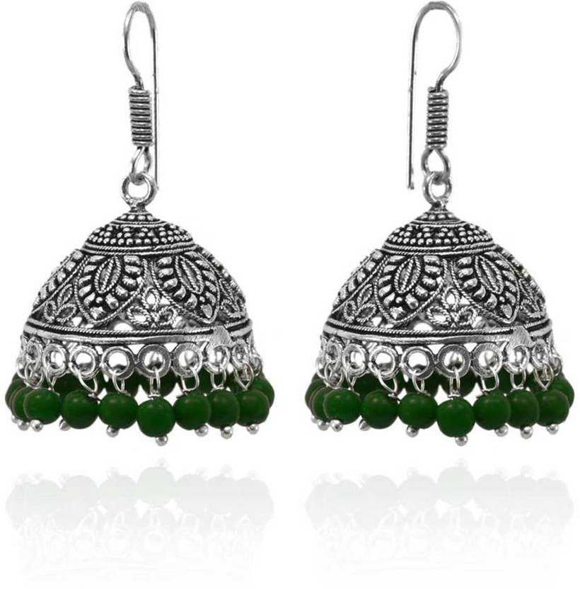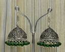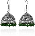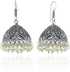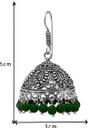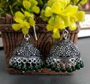 Oxidized Silver Plated Green Pearl Drop Fish hook Design Jhumka