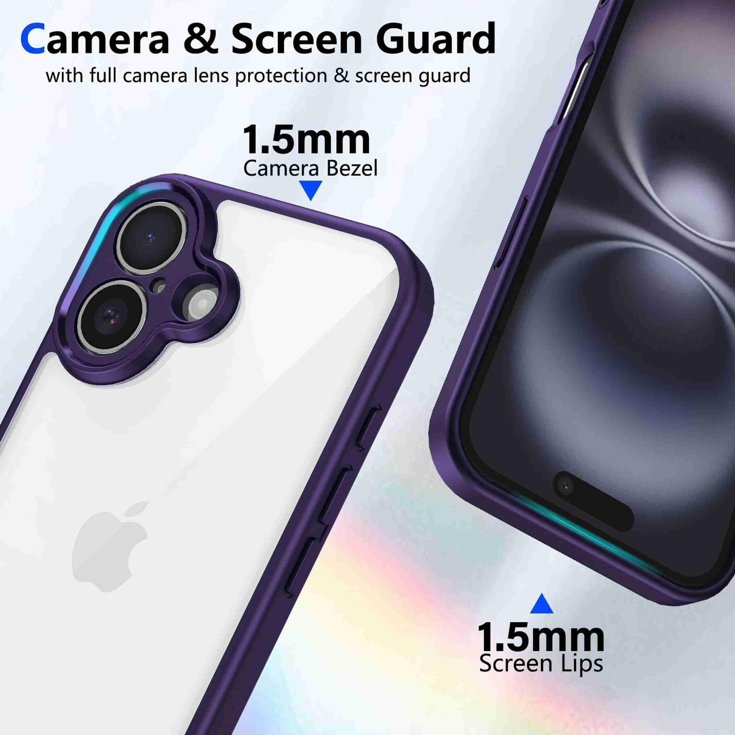 Back Cover for iPhone 16 (Purple, Transparent, Camera Bump Protector, Pack of: 1)
