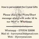 Designed to showcase your favorite photos elegantly, our custom crystals are works of art that you can display anywhere in your home or office. These stunning conversation pieces are durably constructed from a flawless, optically clear crystal that draws all eyes to the beautiful photo engraving within. If you’re looking for a unique luxury gift to celebrate a birthday, anniversary, or essential life achievement, a personalized photo crystal is a thoughtful and original way to show you care. With a variety of classic shapes and customization options to choose from, you can create a one-of-a-kind crystal gift that’s perfect for any occasion. Please send us a high resolution image because more quality of the crystal engraving directly depends on th quality of picyure. AFTER ORDER SEND ORDER ID AND PHOTO TO 70534 52698 (WHATS APP) & Mail at - kyrcrystal3d@gmail.com