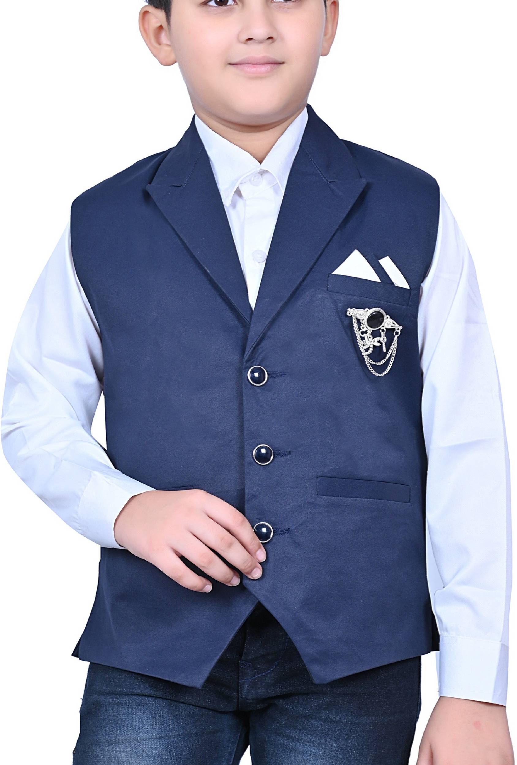 MEETHU. Made from premium quality Cotton blend fabric for utmost comfort, that makes it skin friendly. It features solid pattern, mandarin collar, button closures on the front, sleeveless, and pocket square. This WAISTCOAT would be a great inclusion in your child's closet. We are a leading Brand in kids wear with wide range of kids clothing which includes kids ethnic wear, accessories and a lot more