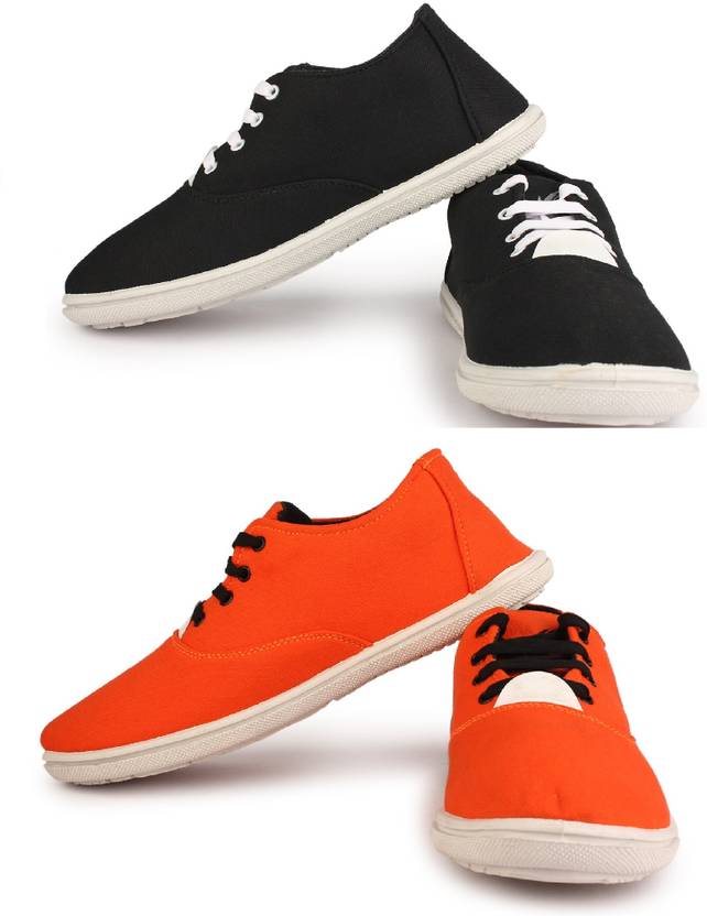 Kzaara Casuals For Men (Black, Orange , 10)