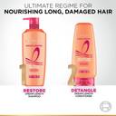Dreaming of long hair but tired of long hair problems like hair breakage, damaged hair, and split ends? Save the last 3 cm of your hair and instantly transform your long hair with the new LorealParis Dream Lengths Restoring Shampoo a shampoo for hair growth! Infused with Vegetal Keratin and Castor Oil, the creamy Dream Lengths Restoring Shampoo intensely repairs the lengths of your hair so you can achieve your long hair goals without long hair problems a great shampoo for split ends! With vitamins B3 and B5, this hair repair shampoo visibly repairs damaged hair without weighing your hair down and leaves your hair feeling 2X stronger. For best results and reduced hair breakage, use the LorealParis shampoo with the new LorealParis Dream Lengths Detangling Conditioner and LorealParis Dream Lengths No Haircut Cream (Leave-In Cream). Massage the shampoo gently into the wet scalp and hair, working from roots to tips and lather. Rinse thoroughly until no residue is left behind.