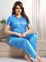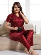 Enjoy the seasonal mood in silky satin pajama nightsuit set Classic short sleeve nightsuit set with lapel collar and full length pants with elastic for relaxation. This light weight satin pyjama set if beautifully decorated with contrast on collar, sleeve hem and pajama hem, its a perfect gift for slumber party for girls bridal set. Can be gifted as bridal nightwear set as well. Made with 100% Polyester Silky satin fabric which is light in weight and easy on skin.
