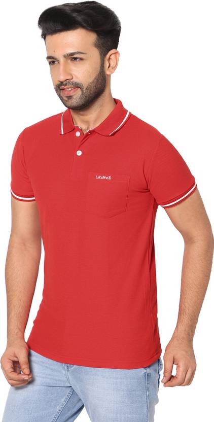 Men Solid Polo Neck Cotton Blend Red T-Shirt
