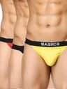 Furthermore, the pouch design of this exotic innerwear thong gives extra breathing space to maintain the lower body temperature. The elastic waistband of this naughty yet stylish thong underwear is immensely soft and smooth on the skin. Also, it maintains its grip from the waistline. The prominent plus point about this men's thong from BASIICS collection is that it has an anti-microbial finish and prevents your scrotal area from unwanted rashes and irritation. Get your hands on this super stylish thong underwear in distinct colour combinations such as blue, teal and white, black, red and yellow, black, red and white and some other combo packs of 3.