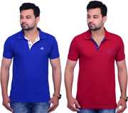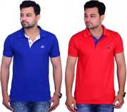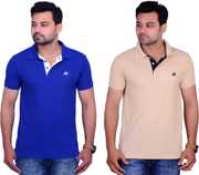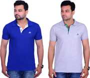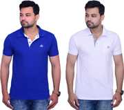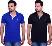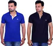 A fine Polo Neck T-Shirt from La Milano created with high quality cotton matty fabric. It has Polo type neck. It has matching fabic on the button strip and a samll piping on the bottom of the stent. It has cuts on the both the side of the side of hem. It has symbole on the chest of the products as shown in the Image.It is a combo of two t-shirt so it is cost effactive. This t-shirt will make you look awsome.
