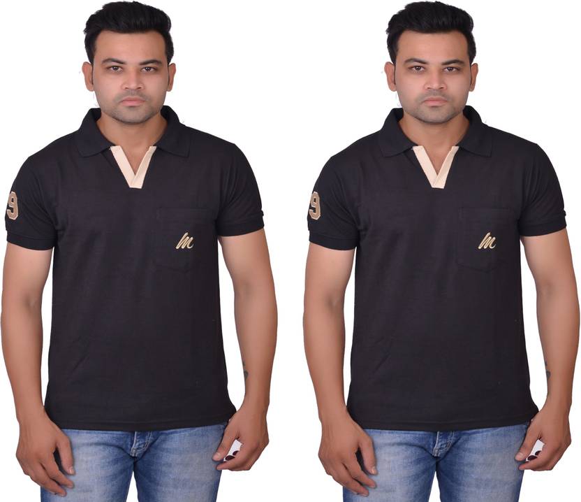 A fine Polo Neck T-Shirt from La Milano created with high quality cotton matty fabric. It has Polo type neck. It has matching lace opening and no button on it.A samll piping on the bottom of the stent. It has cuts on the both the side of the side of hem. It has symbole on the chest of the products as shown in the Image.It is a combo of two t-shirt so it is cost effactive. This t-shirt will make you look awsome.