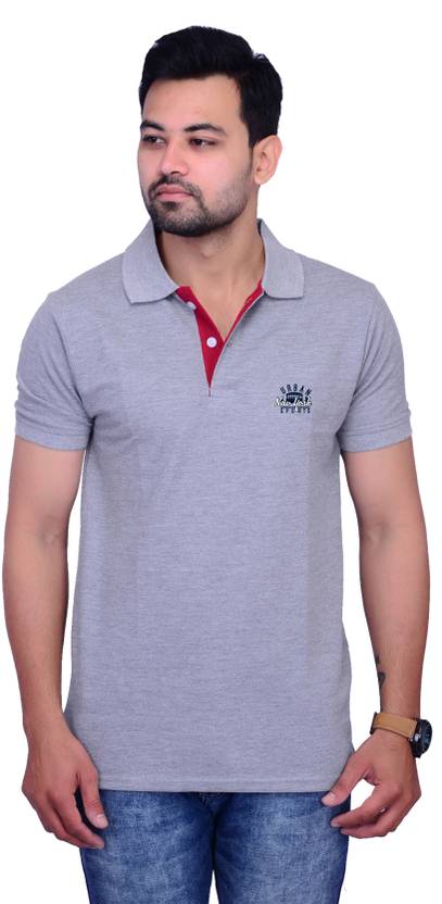 La Milano Men Solid Polo Neck Polycotton Grey T-Shirt
