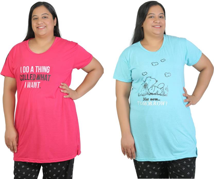 La Rainbow Pack of 2 Long T shirt for Plus Sized Women with Slits Women Printed Round Neck Cotton Blend Green, Pink T-Shirt