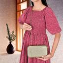 Women's Knot Design Evening Frame Clutch-Sparkling Bronze