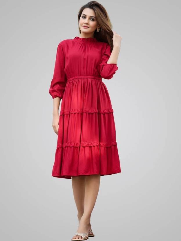 LA ROPA Women Solid Cotton Rayon Flared Kurta (Red)