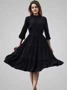 LA ROPA Women Solid Cotton Rayon Flared Kurta (Black)