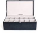 Tie Case Elegant and premium collection of watch boxes to display and keep your watches, jewellery, etc safe and dust free. Soft pillows inside for every size watch., High Quality Leatherette used with good finishing. Lined with a luxury velvet and secured with metal clip lock. High quality Classic 12 Slot watch box Designed to keep your watches and jewellery safe and dirt-free., 12 compartments inside which helps to fit every size watch. The watches can be kept comfortably and it fits nicely. Perfectly designed to accommodate jewellery, bracelets, pocket squares, etc., A great watch box plus drawer for gifting as well. A perfect and useful gift for others. This portable watch box is a high-end product that will last you throughout the years., Beautifully handcrafted in INDIA.