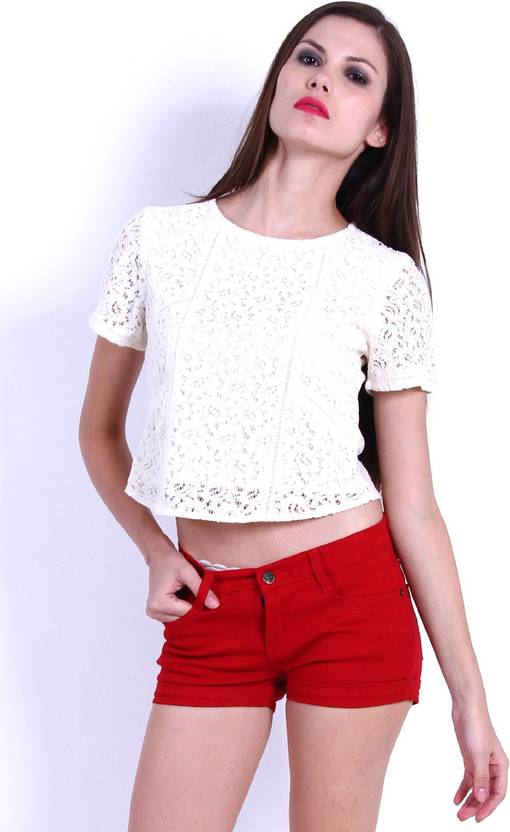 Party Regular Sleeves Solid Women White Top