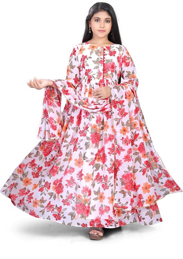 Tranding Printed Kurti gown Dupatta set Georgette Stitched Fancy anarkali Gown Full Ghera with duptta Lace Border ....