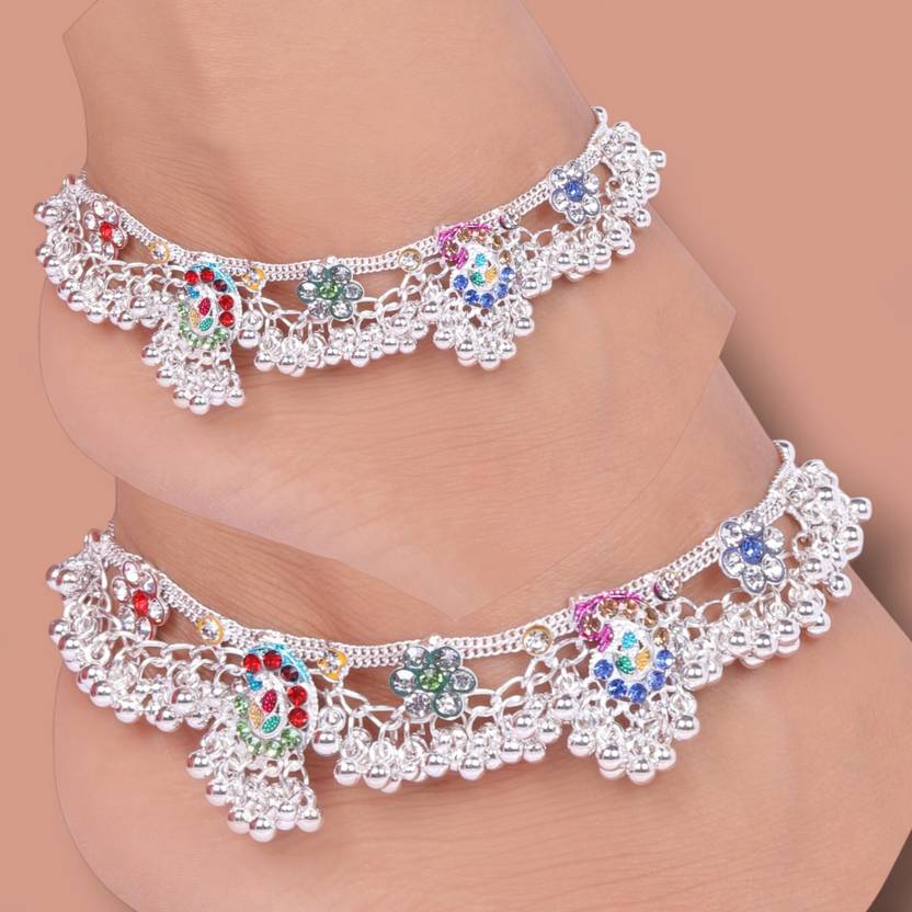 A7 Colorful Stone-Studded Silver Anklet for Ethnic Outfits For Women & Girls