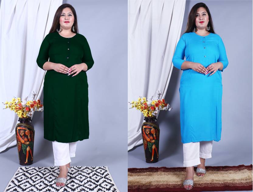LABASANA Pack of 2 Women Solid Viscose Rayon Straight Kurta (Green, Blue)