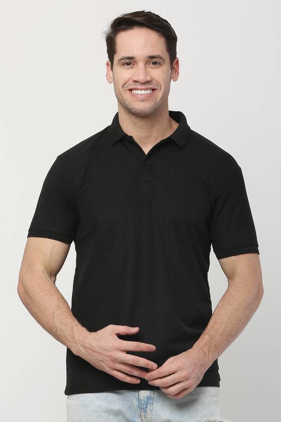 Men Solid Polo Neck Polycotton Black T-Shirt