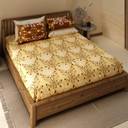 LABHAM Cotton King Flat 200 TC Motifs Bedsheet (Pack of 1, Beige&Coffee)
