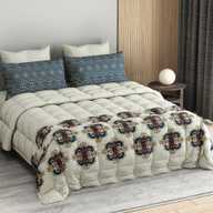 Transform your bedroom into a vibrant sanctuary with the Rangriti Collection King Size Bedsheet. Crafted from 180 thread count, 100% cotton fabric, this bedsheet promises unparalleled softness and comfort, ensuring you have a luxurious sleep experience every night. Premium Quality Material: Made from 100% cotton with a 180 thread count, our bedding set is breathable, durable, and exceptionally soft to the touch. Perfect Fit: Designed for double king size beds, the generous dimensions of bedsheet 108'' x 108'' ensure a perfect fit without any hassle. Inspired by Tradition: Each design is inspired by traditional Indian motifs and patterns, celebrating the rich cultural heritage from various states of India. From the intricate paisleys of Kashmir to the vibrant block prints of Rajasthan, every bedsheet is a piece of art that tells a story. The bedding set feature an array of colors and designs, reflecting the diverse and rich tapestry of Indian culture. Whether you prefer bold and bright or subtle and serene, there’s a design to suit every taste. Easy Care: Our bedsheets are machine washable and retain their softness and vibrancy wash after wash, making them a practical choice for everyday use. Why Choose Rangriti Collection? Cultural Heritage: Each piece is a celebration of Indian craftsmanship, bringing the essence of India's diverse cultures right into your home. Unmatched Comfort: The high-quality cotton fabric ensures you stay cool in the summer and warm in the winter, providing year-round comfort. Style and Elegance: The traditional designs coupled with contemporary aesthetics make these bedding set a perfect addition to any modern home decor. Upgrade your bedroom decor with the Rangriti Collection King Size bedding set and experience the perfect blend of tradition, comfort, and elegance. Indulge in the luxury of 100% cotton and the beauty of India’s rich cultural heritage, and let your bedroom reflect your unique style and personality.