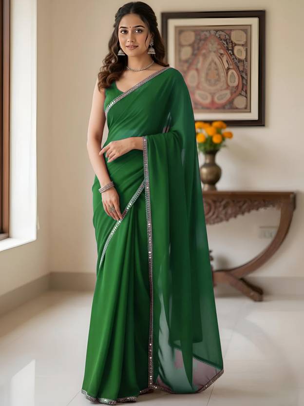 Labheshwari Solid/Plain Bollywood Georgette Saree  (Green)