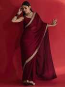 Make a lasting impression with this elegant chinon saree, designed for the modern woman who values tradition. Featuring a richly detailed golden embroidered border, this saree combines timeless craftsmanship with contemporary charm. Perfect for festive occasions, weddings, and parties, it ensures you look your graceful best wherever you go.