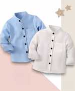 Discover delightful flair with this charming pack of two boys' long sleeve and short-sleeve button-down shirts. The first shirt showcases a stunning tropical print featuring navy monstera leaves, soft pink florals, and gentle peach accents on a crisp white background. The second shirt presents a refreshing blue and white checkered pattern that's both timeless and versatile. Crafted from a comfortable cotton blend fabric, both shirts feature traditional point collars, convenient front button closures, and quality stitching throughout. The checkered variant includes a practical chest pocket for added functionality. These regular-fit shirts are perfect for various occasions, from casual outings to holiday celebrations. The lightweight material make certain all-day comfortable, whether at school or family gatherings. Easily paired with shorts, trousers, or jeans, these shirts offer multiple styling options. The shirts feature straight hemlines and neat construction, making them ideal for growing boys. Machine washable in cold water with tumble dry low setting for easy. Available in various sizes to make sure the perfect fit for your little one.