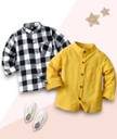 Discover delightful flair with this charming pack of two boys' long sleeve and short-sleeve button-down shirts. The first shirt showcases a stunning tropical print featuring navy monstera leaves, soft pink florals, and gentle peach accents on a crisp white background. The second shirt presents a refreshing blue and white checkered pattern that's both timeless and versatile. Crafted from a comfortable cotton blend fabric, both shirts feature traditional point collars, convenient front button closures, and quality stitching throughout. The checkered variant includes a practical chest pocket for added functionality. These regular-fit shirts are perfect for various occasions, from casual outings to holiday celebrations. The lightweight material make certain all-day comfortable, whether at school or family gatherings. Easily paired with shorts, trousers, or jeans, these shirts offer multiple styling options. The shirts feature straight hemlines and neat construction, making them ideal for growing boys. Machine washable in cold water with tumble dry low setting for easy. Available in various sizes to make sure the perfect fit for your little one.