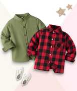 Discover delightful flair with this charming pack of two boys' long sleeve and short-sleeve button-down shirts. The first shirt showcases a stunning tropical print featuring navy monstera leaves, soft pink florals, and gentle peach accents on a crisp white background. The second shirt presents a refreshing blue and white checkered pattern that's both timeless and versatile. Crafted from a comfortable cotton blend fabric, both shirts feature traditional point collars, convenient front button closures, and quality stitching throughout. The checkered variant includes a practical chest pocket for added functionality. These regular-fit shirts are perfect for various occasions, from casual outings to holiday celebrations. The lightweight material make certain all-day comfortable, whether at school or family gatherings. Easily paired with shorts, trousers, or jeans, these shirts offer multiple styling options. The shirts feature straight hemlines and neat construction, making them ideal for growing boys. Machine washable in cold water with tumble dry low setting for easy. Available in various sizes to make sure the perfect fit for your little one.