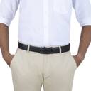 No More Holes - Introducing a unique sliding mechanism. No pushing. No pulling. Just slide the belt into the buckle and adjust for a superbly comfortable fit. This buckle simply auto-locks the belt. To release, just gently push the lever. One big size that fits all waist (28, 30, 32, 34, 36, 38, 40, 42, 44). Made from full grain vegan synthetic leather (Pu-Leather). Handcrafted for those who do not like animal leather products. Adjustable up to waist 44. To adjust, trim the belt according to your size by removing the buckle and cutting the edge as per your waist. This belt will add a stylish look to your jeans, chinos, and trousers. Perfect gift for your loved ones. Stylish nickel-free zinc alloy buckle that is elegantly designed with class.